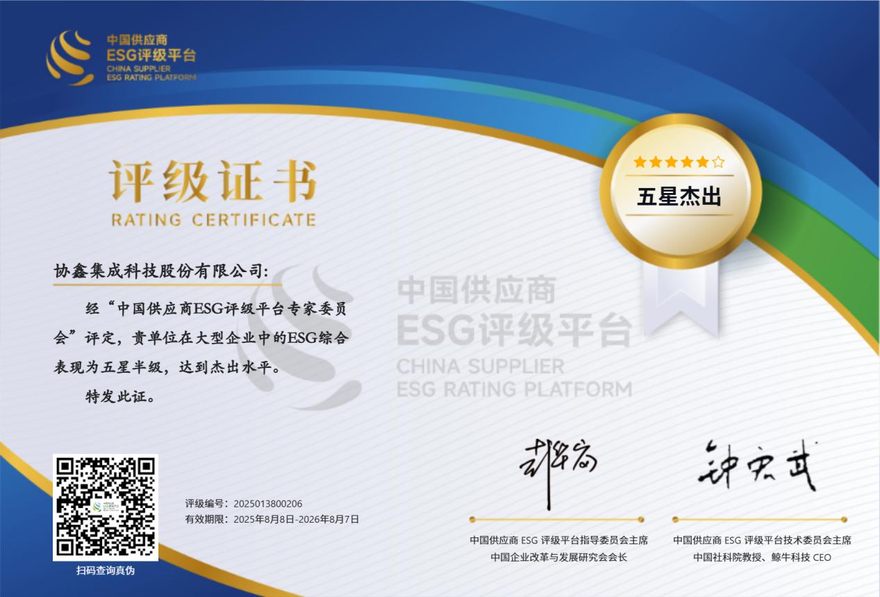 8月11日,中国供应商ESG评级平台发布了2025年最新评级结果。爱游戏ayx体育集成在大型企业中的ESG综合表现为五星半级,达到杰出水平。这一认可让公司在ESG可持续发展治理领域再获突破,彰显了公司在该领域的持续进步和行业领导地位。