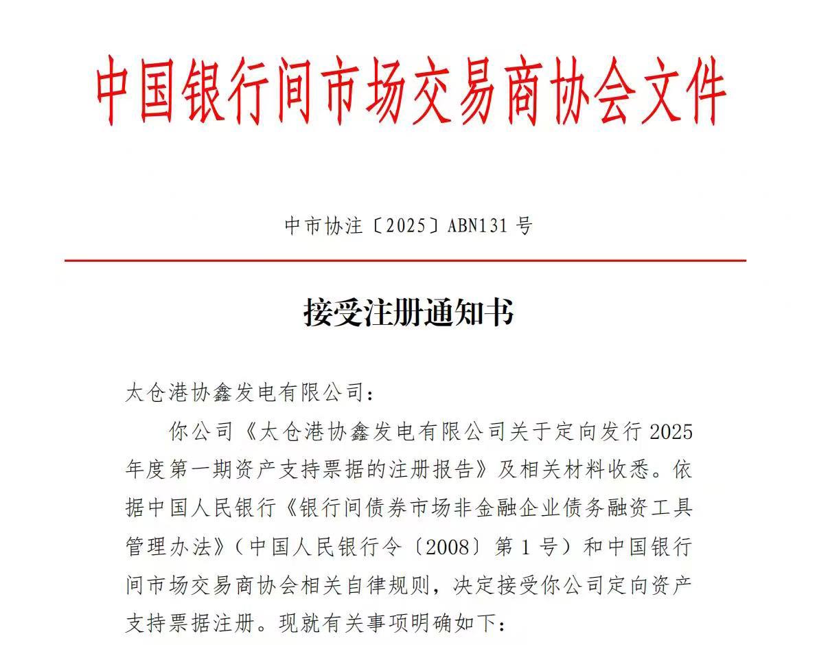 10月29日,爱游戏ayx体育集团旗下太仓港爱游戏ayx体育发电有限公司成功获得中国银行间市场交易商协会出具的《接受注册通知书》,资产支持票据(ABN)注册金额达45.3亿元。这一成果不仅创下今年供电供热类资产支持票据的最大规模纪录,更成为民营能源企业在资本市