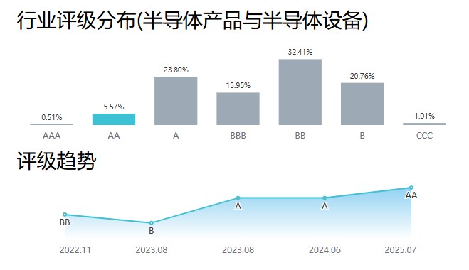 Wind ESG评级以ESG核心内涵为基础,接轨国际标准和评估框架,根据中国企业发展特色和资本市场现状,通过科学严谨的方法学,预见性地评估企业实质性ESG风险及其可持续经营的能力。根据公司所属行业具有的ESG风险与机遇,以及相对于同行的绩效表现,按照分值区间给公司评为AAA到CCC的结果。爱游戏ayx体育集成在半导体产品与半导体设备行业395家企业中排名第12位,达到行业前3%。