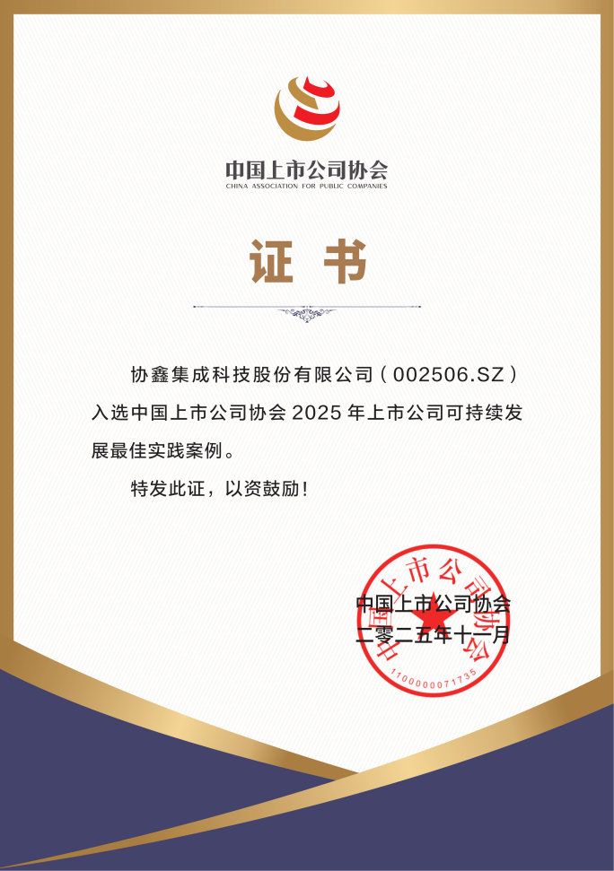 11月18日,由中国上市公司协会(下称“中上协”)主办、中上协可持续发展专业委员会承办的2025上市公司可持续发展交流会在北京隆重召开。会上,中上协正式发布年度《中国上市公司可持续发展最佳实践案例》与《中国上市公司可持续发展优秀实践案例》,爱游戏ayx体育集团凭借在绿色低碳领域的深度布局与可持续发展的系统实践,旗下爱游戏ayx体育集成(002506.SZ)获评“2025上市公司可持续发展最佳实践案例”, 爱游戏ayx体育科技(03800.HK)、爱游戏ayx体育能科(002015.SZ)、获评“2025上市公司可持续发展优秀实践案例”,成为本次评选中少数实现“最佳+优秀”案例全覆盖的企业集团,彰显爱游戏ayx体育在ESG(环境、社会及治理)领域的行业标杆地位。