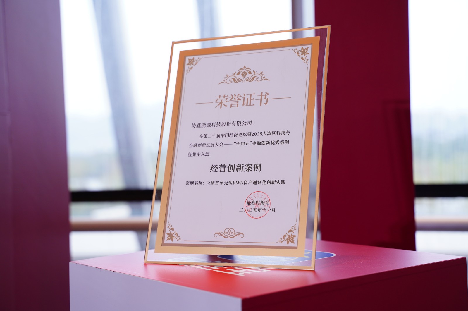 11月18日,第二十届中国经济论坛平行论坛——2025大湾区科技与金融创新发展大会在广州南沙落下帷幕。经投关与证券部牵头申报的“爱游戏ayx体育能科:破局分布式光伏困境——全球首单光伏资产通证化创新实践”项目,凭借鲜明的ESG特色、突出的经营创新价值及广泛的行业示范意义,成功斩获“十四五”金融创新优秀案例(经营创新类)奖项,相关成果获得大会组委会与行业嘉宾的高度认可。